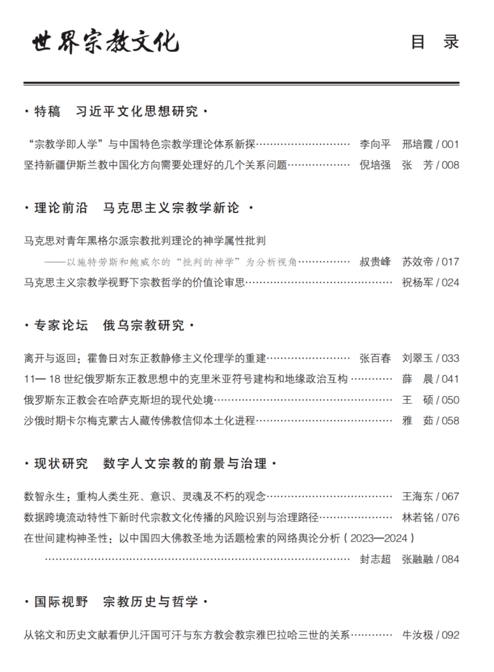 近日,beat365体育官网平台李向平教授与其博士研究生邢培霞共同在《世界宗教文化》2025年第4期上发表了题为《“宗教学即人学”与中国特色宗教学理论体系新探》的高质量论文。