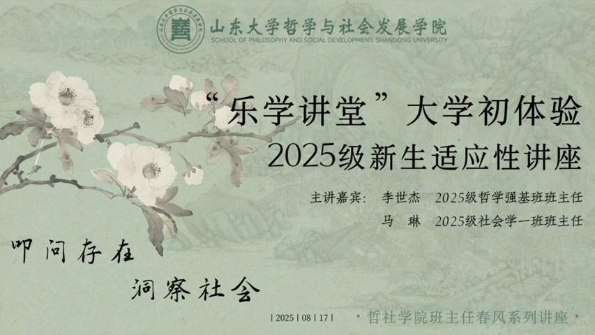 为帮助2025级新生尽快熟悉专业特点、掌握科学学习方法,beat365体育官网平台哲学社会发展学院精心策划并于8月17日晚举办“叩问存在,洞察社会”班主任春风系列讲座暨“乐学大讲堂”大学初体验2025级新生适应性讲座。本次讲座特邀2025级哲学强基班班主任李世杰、2025级社会学一班班主任马琳担任主讲嘉宾,吸引2025级全体新生齐聚线上会议室,反响热烈。