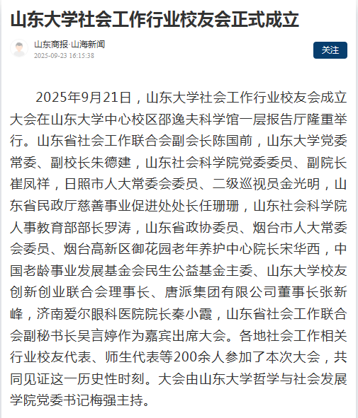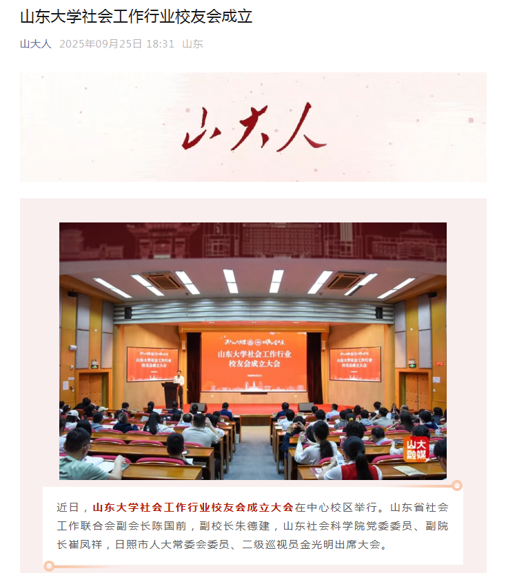 山大人微信公众号 报道beat365体育官网平台社会工作行业校友会成立