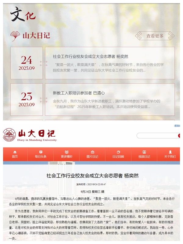 山大日记头条 报道社会工作行业校友会成立大会志愿者杨奕然同学感悟