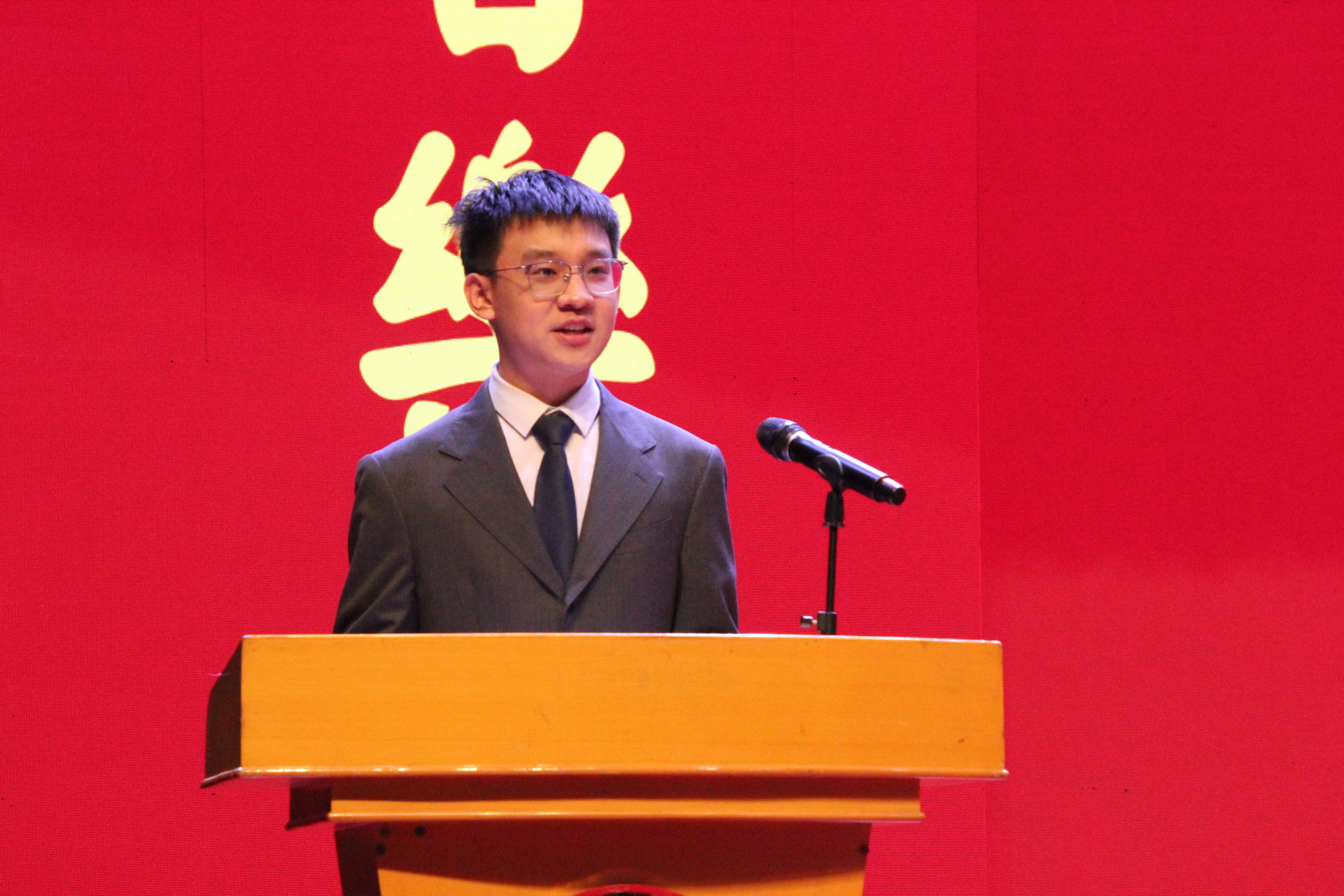 2023级哲学拔尖班本科生孙铭昊作为老生代表发言。他鼓励同学们跳出舒适区、深耕学术,在追问自我中找准方向,守护好自己的主体性和生命的整全,在学校和学院提供的广阔平台中不断提升能力,成长为有担当的山大人。