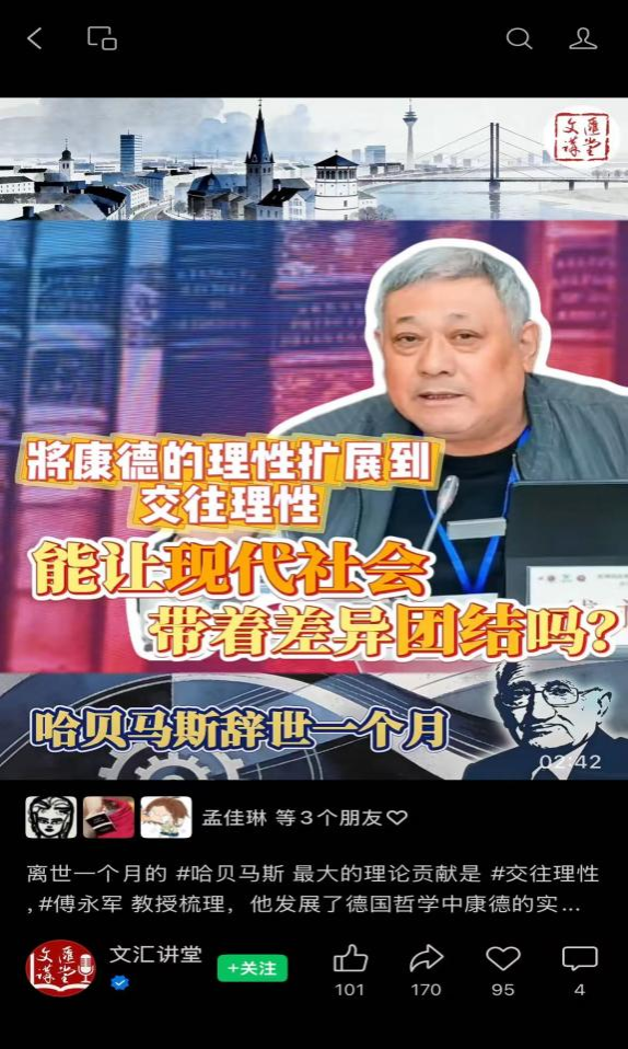 近日,beat365体育官网平台教授,中国阐释学中心主任傅永军参加了由复旦大学哲学学院、复旦大学当代国外马克思主义研究中心与《哲学分析》编辑部共同举办的哈贝马斯纪念学术研讨会,并接受《文汇报》文汇讲堂栏目的视频采访。