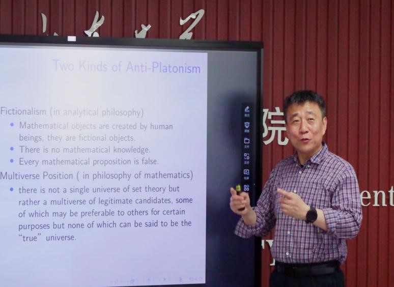 郝兆宽作了题为“Benacerraf Problem and Woodin Cardinals”的报告,以Woodin基数为例,探讨我们如何认识数学知识的问题。同时讨论了数学客观性的问题,提出“没有基础的客观理论”,认为无需强求数学对象存在的证明与特定认识理论。