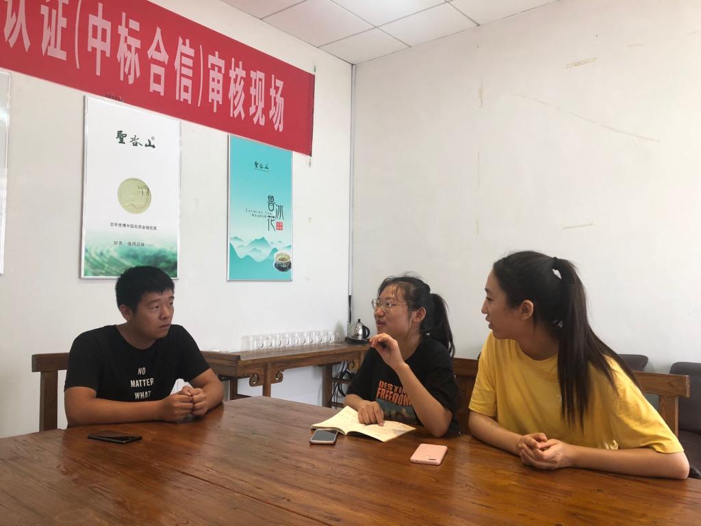 接着调研团提出希望采访两个车间工作人员,经接待人员介绍,车间主任兼茶叶审查师李主任和车间一线工人李师傅接受了我们的采访。调研团分为两组同时采访,并提前告知了被采访人录音以及拍照的需要,征得了对方的同意。在与李主任的访谈中,主要了解到职业农民政策和组织方面的问题与表现。与李师傅的谈论中,调研团成员询问了一些工人们的对职业农民培训的看法以及积极性表现等问题。采访过程十分融洽,收获颇多,成员们了解到许多现实问题和情况。