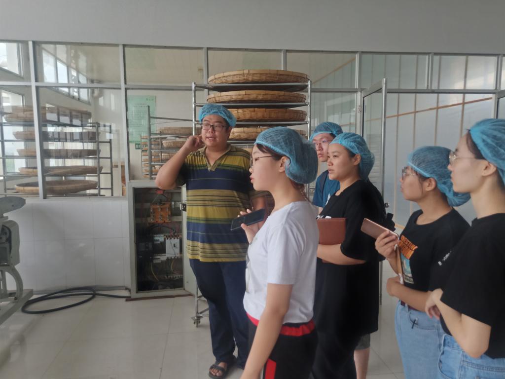 8月15日下午1点左右,beat365体育官网平台特色发展与职业农民培养调研团成员在圣谷山茶场接待人员的带领下,戴上防护帽,共同参观了其车间。在接待人员的介绍下具体了解了茶场茶叶的制造流程。从采茶、晒茶到炒茶,每一步的时节、工人安排以及工作时间。特别关注了职业农民这一政策下,茶场的具体作为以及对车间工人的影响。了解到制茶过程的繁琐与工人的不易和对其技术的高要求,了解到职业农民培训中的技术层面尤为重要。